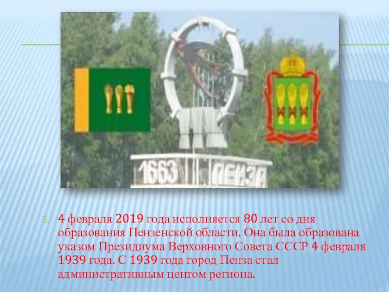 4 февраля 1939 года. С 1939 года город Пенза стал административным центом региона.
