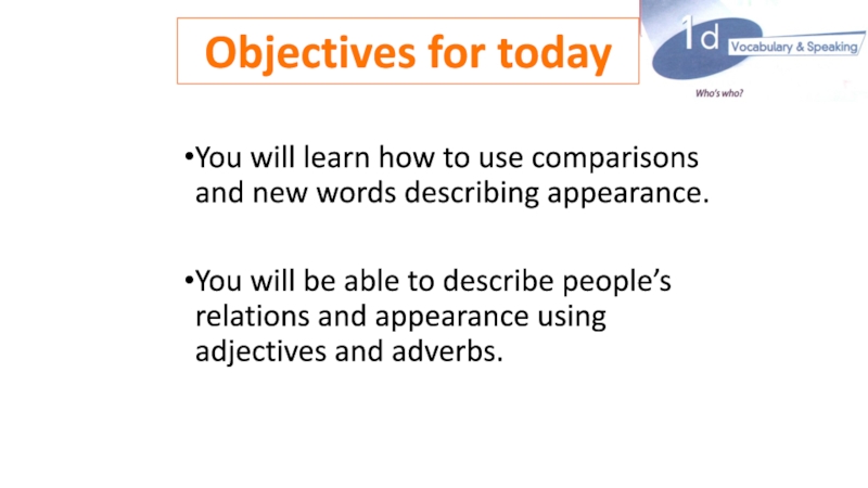 appearance using adjectives and adverbs.Objectives for today
