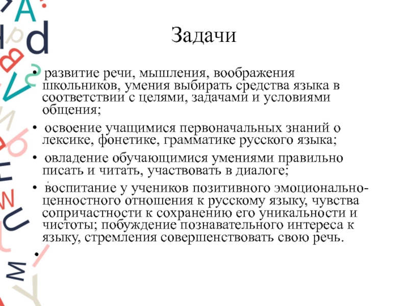 • развитие речи, мышления, воображения школьников, умения выбирать средства языка в соответствии