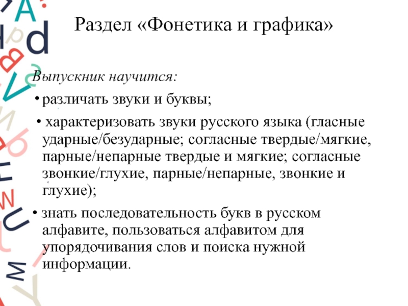 • знать последовательность букв в русском алфавите, пользоваться алфавитом для упорядочивания слов и поиска нужной информации.