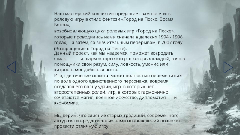 Слайд 2Наш мастерский коллектив предлагает вам посетить ролевую игру в стиле