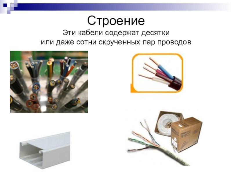 Слайд 8 Строение Эти кабели содержат десятки или даже сотни скрученных пар проводов