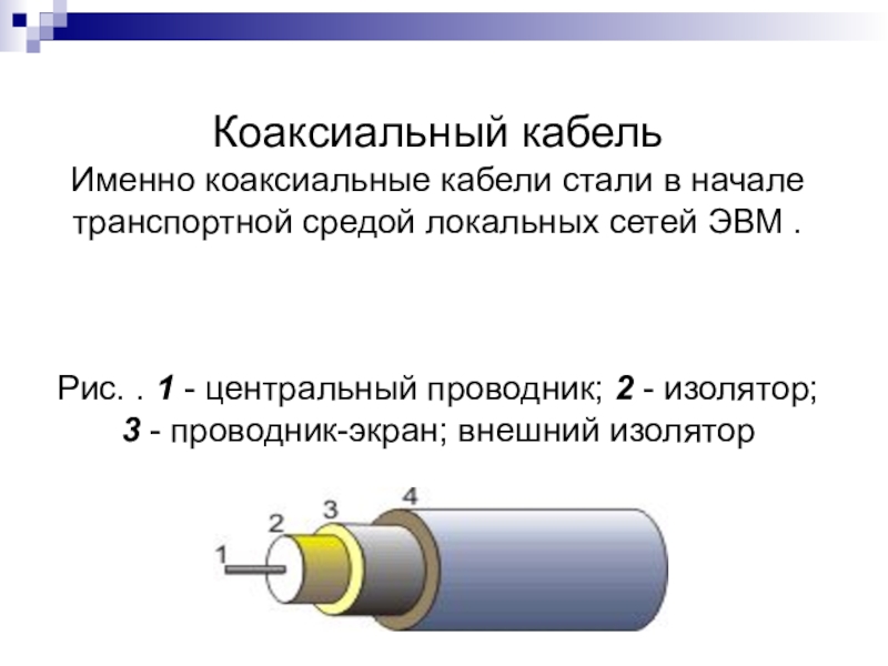 Коаксиальный кабель Именно коаксиальные кабели стали в начале транспортной средой локальных сетей ЭВМ .
