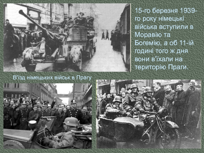 держави «протекторат Богемія і Моравія» на посаді Державного Президента. Угорські війська окупували частину Словаччини та Закарпатську Україну.