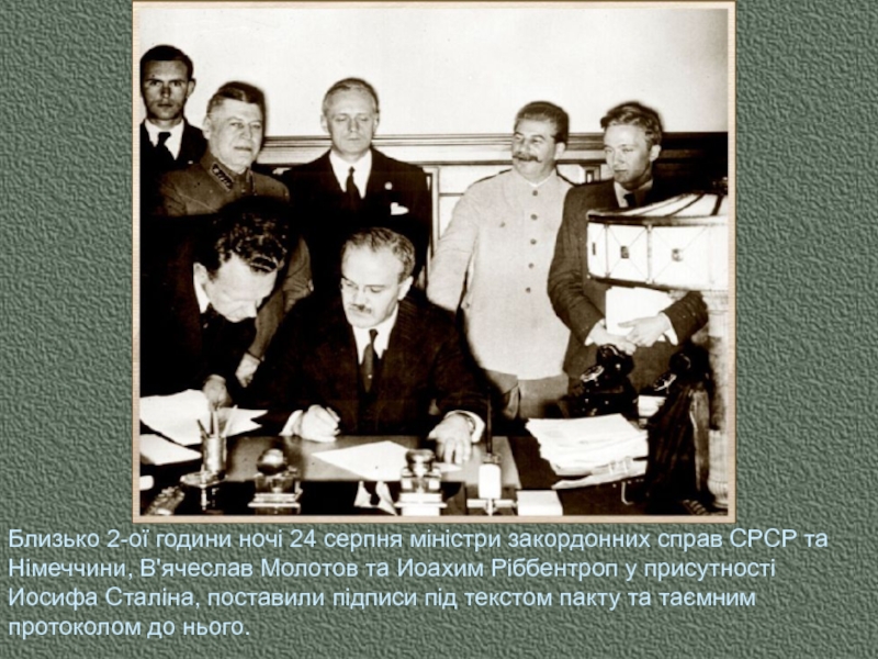 Сталіна, поставили підписи під текстом пакту та таємним протоколом до нього.