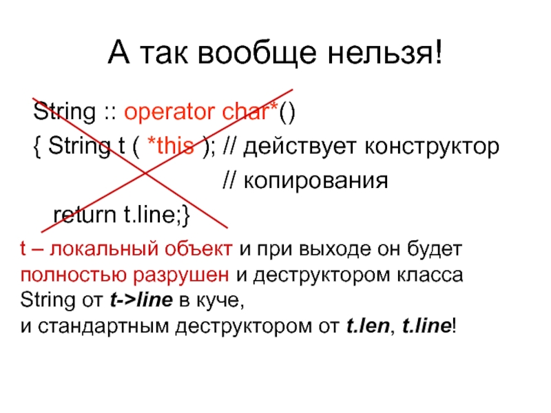 t – локальный объект и при выходе он будет полностью разрушен и деструктором класса String от t->line в куче,