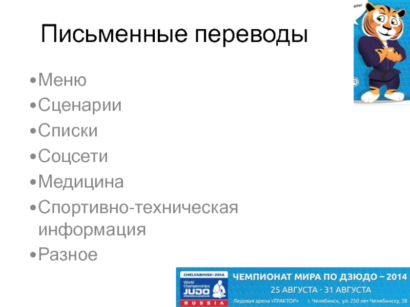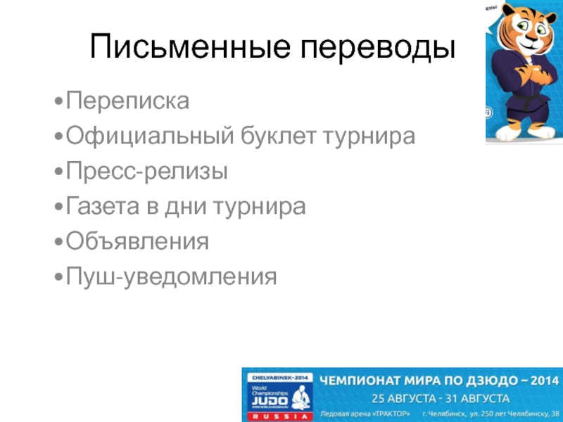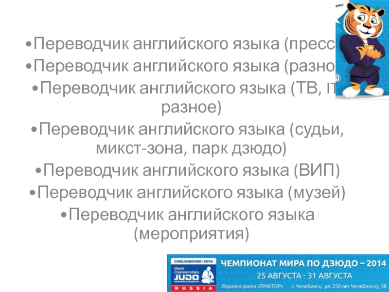 Переводчик английского языка (судьи, микст-зона, парк дзюдо)