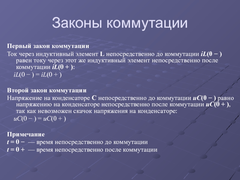 3) В общем решении найти постоянные интегрирования из начальных условий, т. е. условий в цепи в начальный момент времени после коммутации.