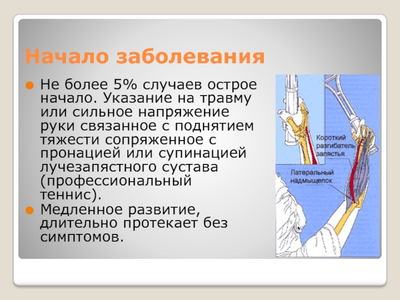 болезненными и ограниченными не только при максимальном разгибании предплечья, ко