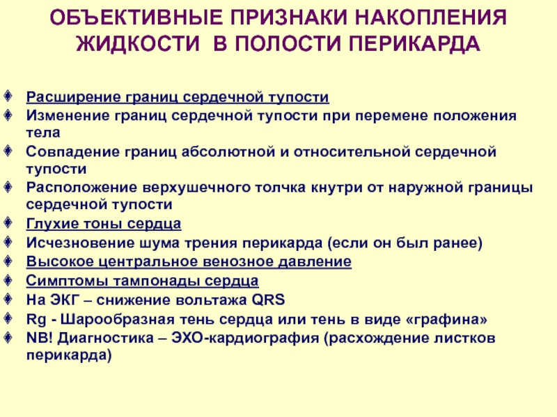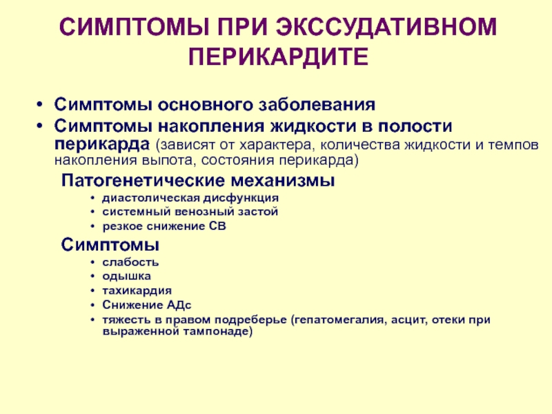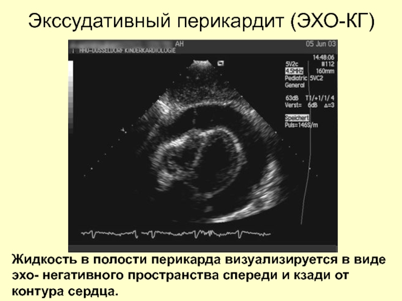 Скопление жидкости в полости перикарда (экссудативный перикардит)