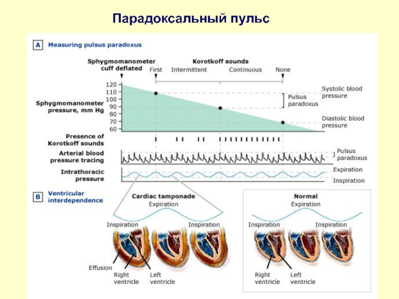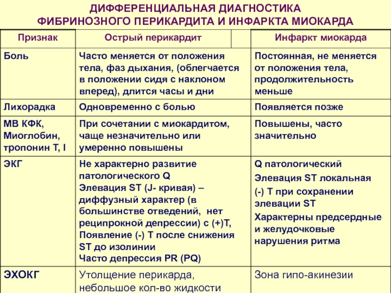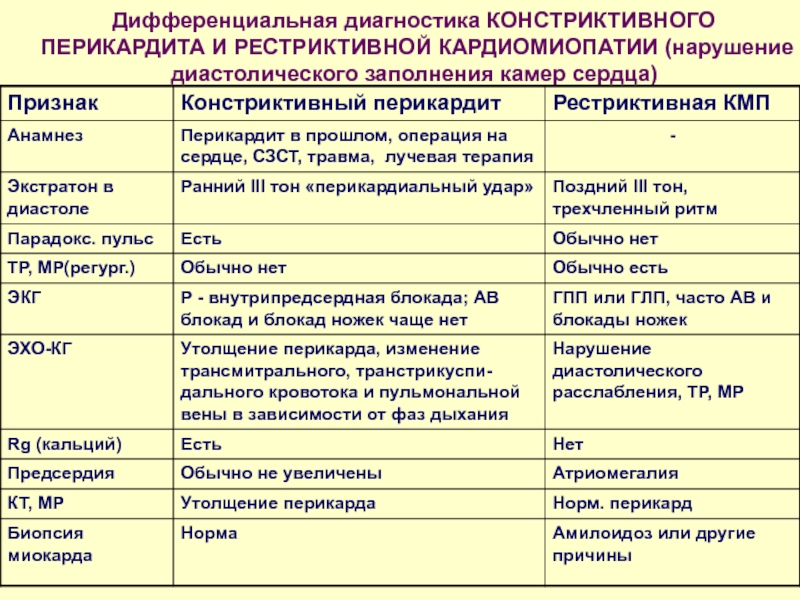 Слайд 71Дифференциальная диагностика КОНСТРИКТИВНОГО ПЕРИКАРДИТА И РЕСТРИКТИВНОЙ КАРДИОМИОПАТИИ (нарушение диастолического заполнения