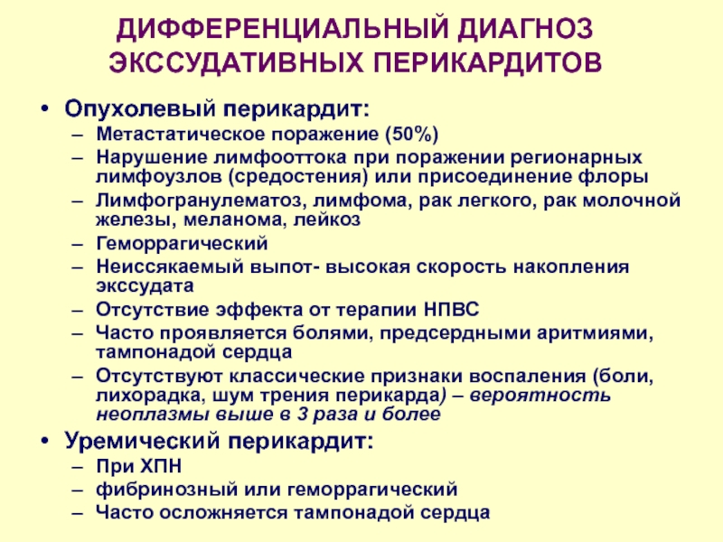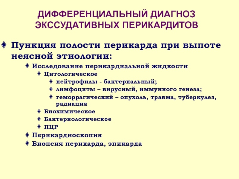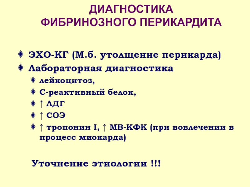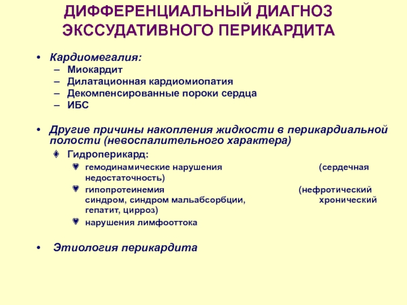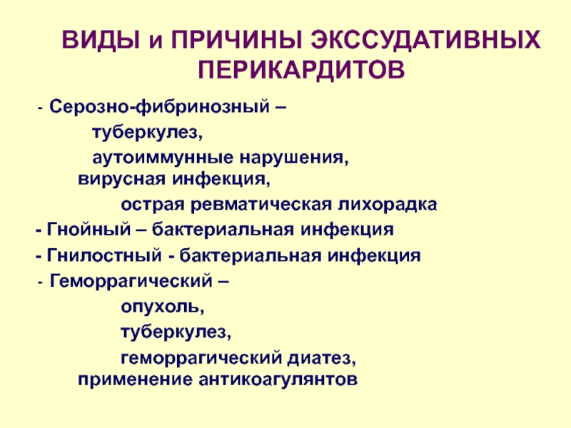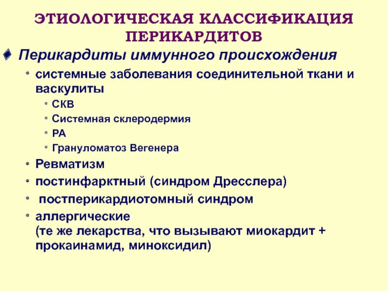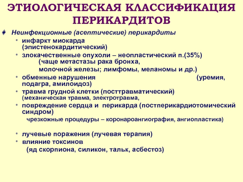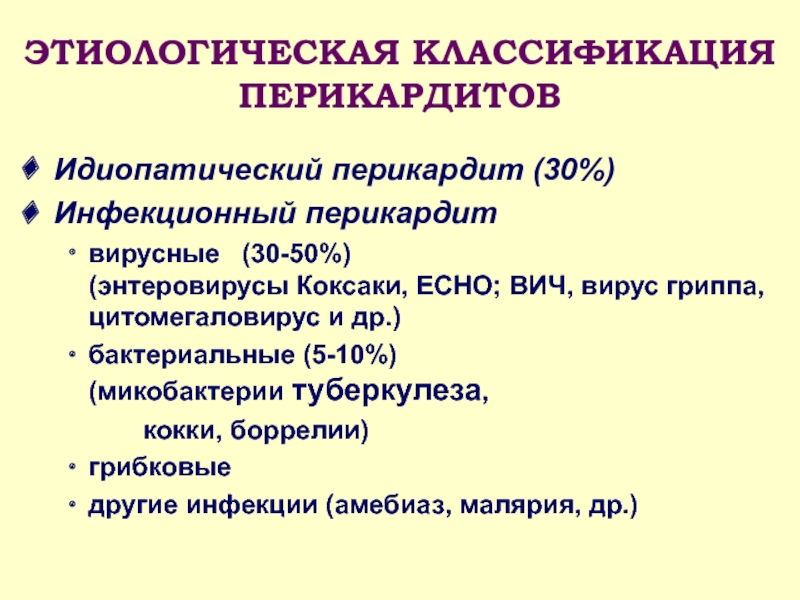 Слайд 75ЭТИОЛОГИЧЕСКАЯ КЛАССИФИКАЦИЯ ПЕРИКАРДИТОВ