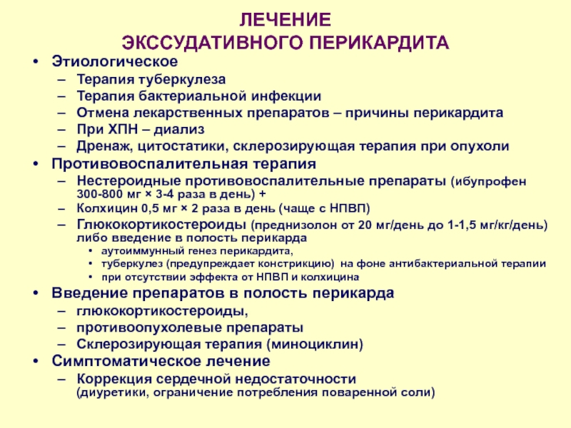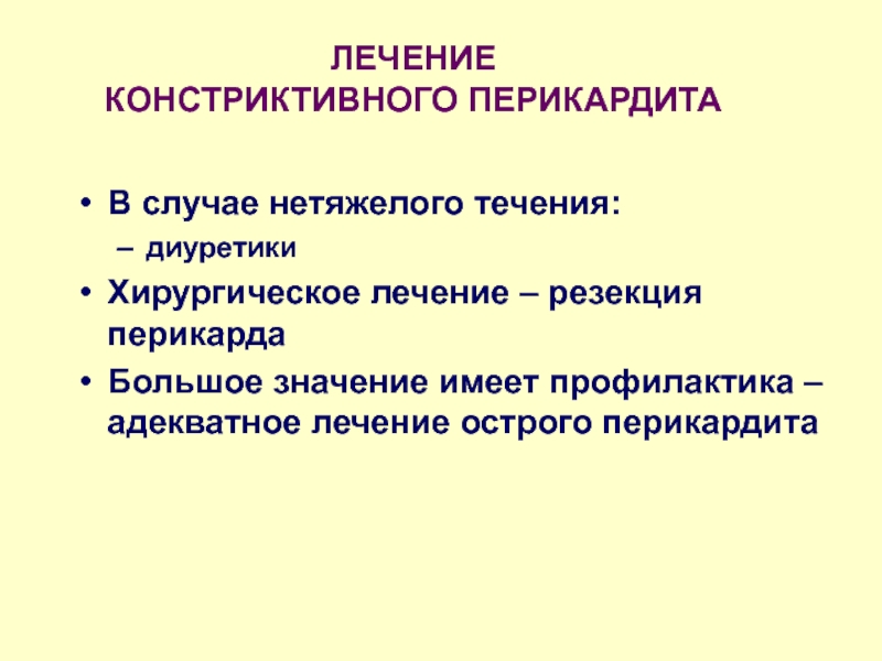 Большое значение имеет профилактика – адекватное лечение острого перикардита