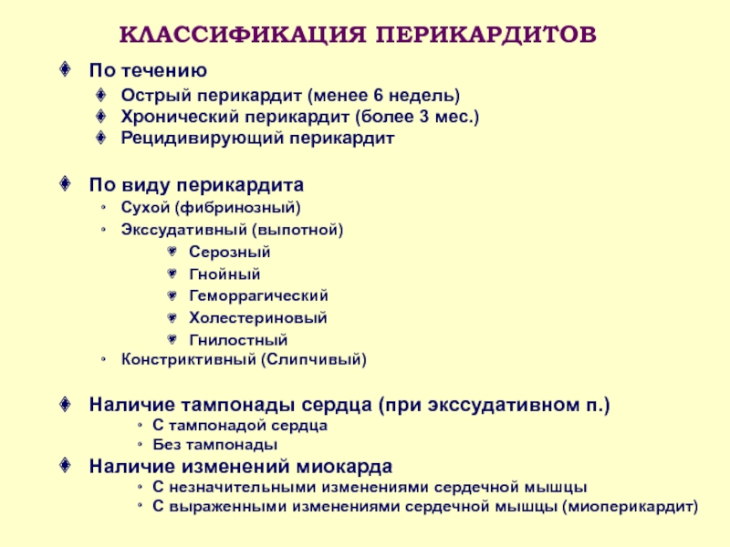 Слайд 7 КЛАССИФИКАЦИЯ ПЕРИКАРДИТОВ