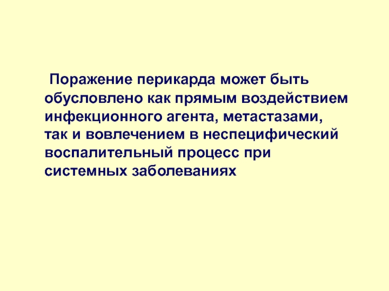 Слайд 8 Поражение перикарда может быть обусловлено как прямым воздействием инфекционного агента,