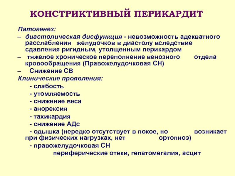 Слайд 70КОНСТРИКТИВНЫЙ ПЕРИКАРДИТ