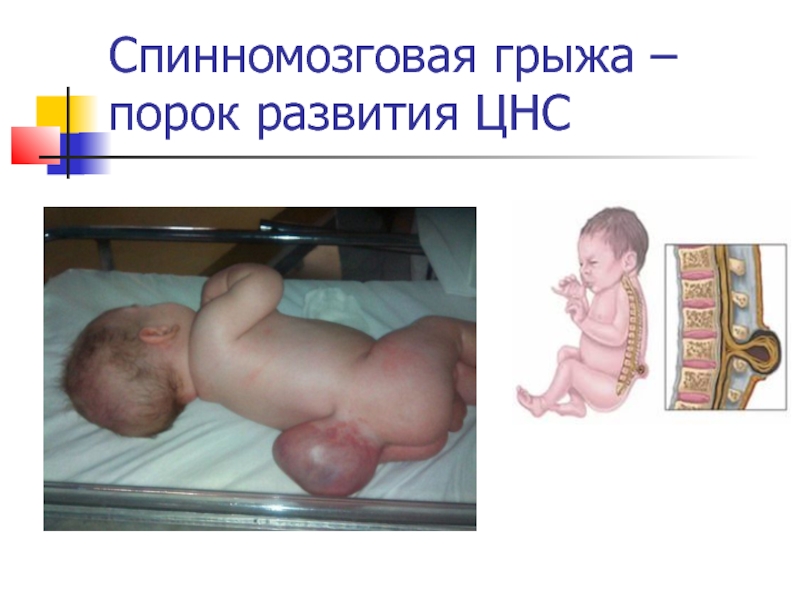 Слайд 7Спинномозговая грыжа – порок развития ЦНС