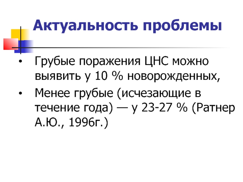 Грубые поражения ЦНС можно выявить у 10 % новорожденных,
