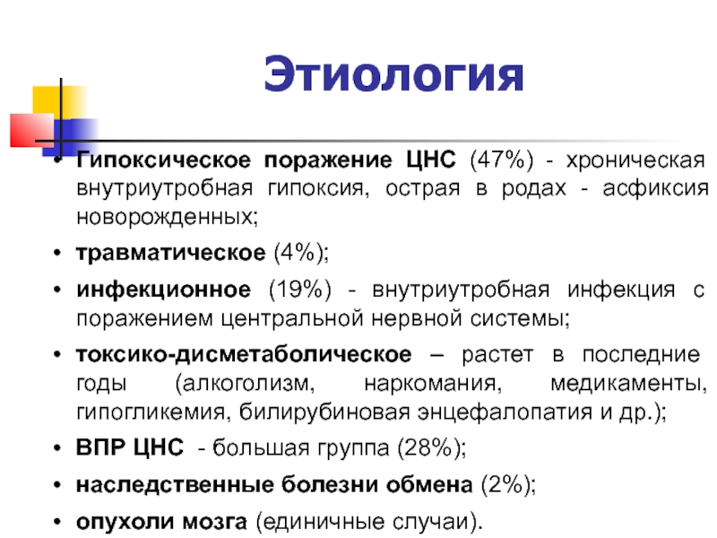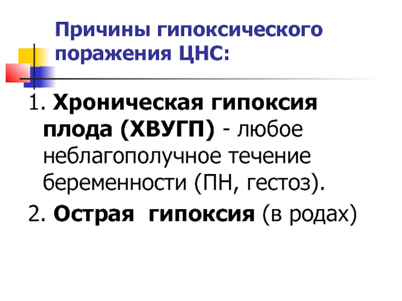 Слайд 10Причины гипоксического поражения ЦНС: