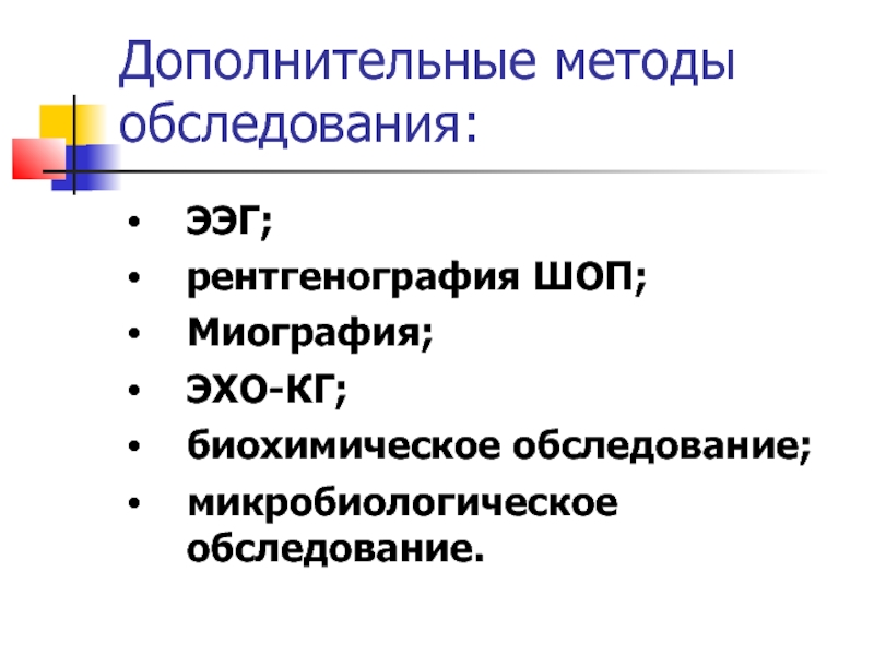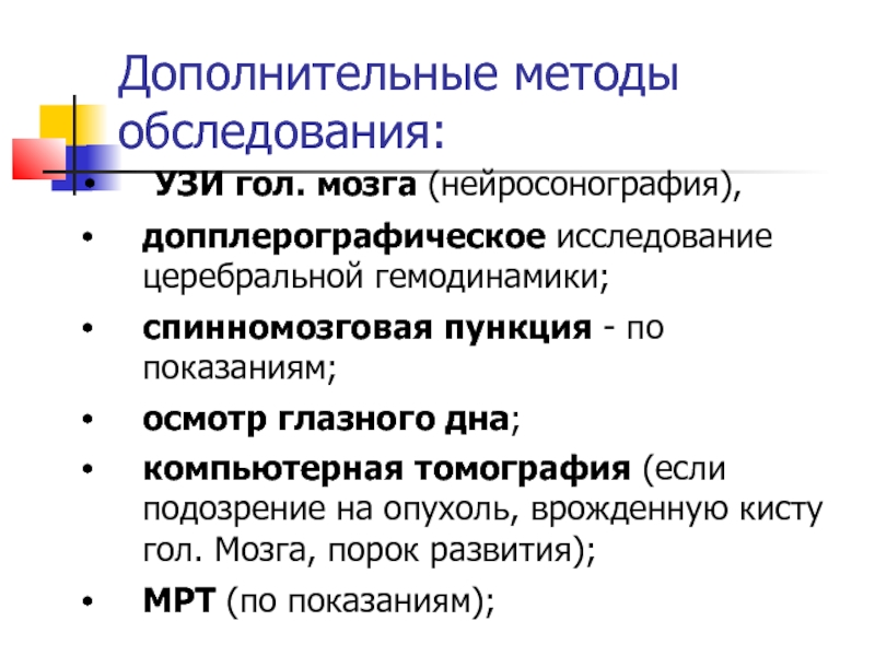 Слайд 40Дополнительные методы обследования: