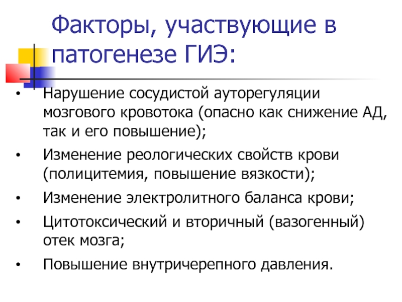 Слайд 16Факторы, участвующие в патогенезе ГИЭ: