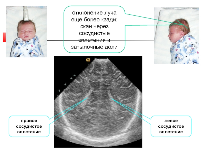 Слайд 38отклонение луча еще более кзади: скан через сосудистые сплетения и
