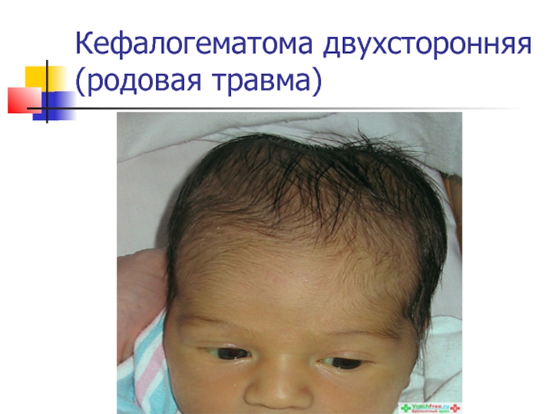 Слайд 9Кефалогематома двухсторонняя (родовая травма)
