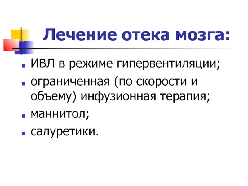 Слайд 43Лечение отека мозга: