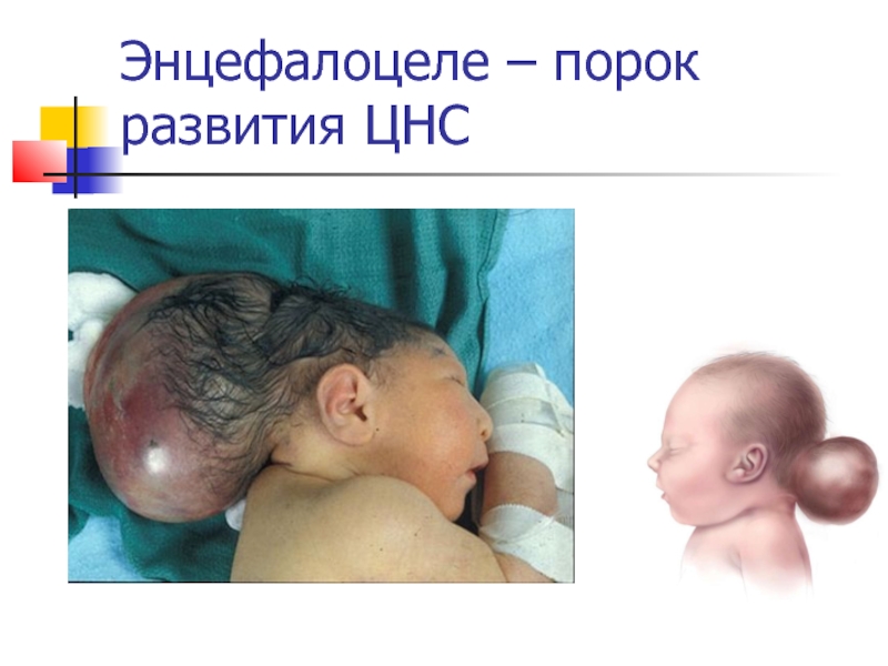 Слайд 8Энцефалоцеле – порок развития ЦНС