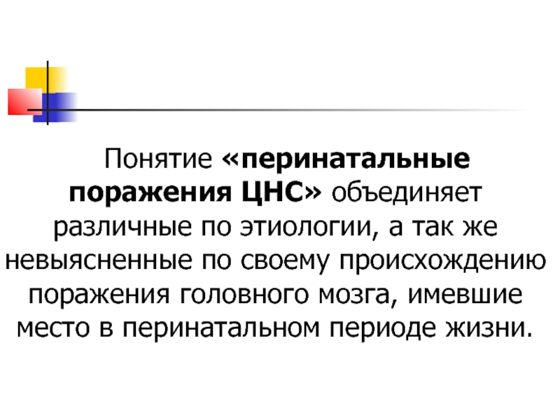 Слайд 2 Понятие «перинатальные поражения ЦНС» объединяет различные по этиологии,