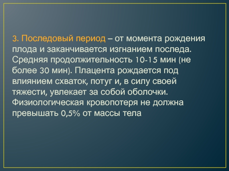 изгнанием последа. Средняя продолжительность 10-15 мин (не более 30 мин).
