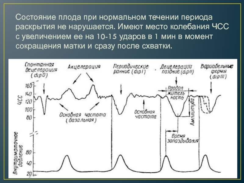 Слайд 16Состояние плода при нормальном течении периода раскрытия не нарушается. Имеют