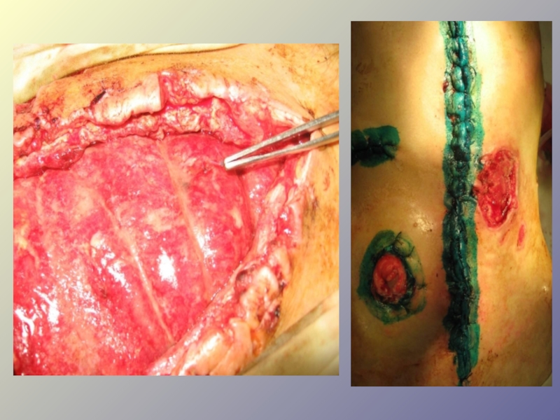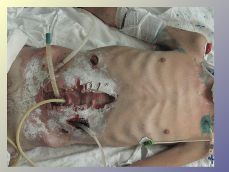 Слайд 17Пациент Т. диагноз: инфицированный панкреонекроз. Гнойно-