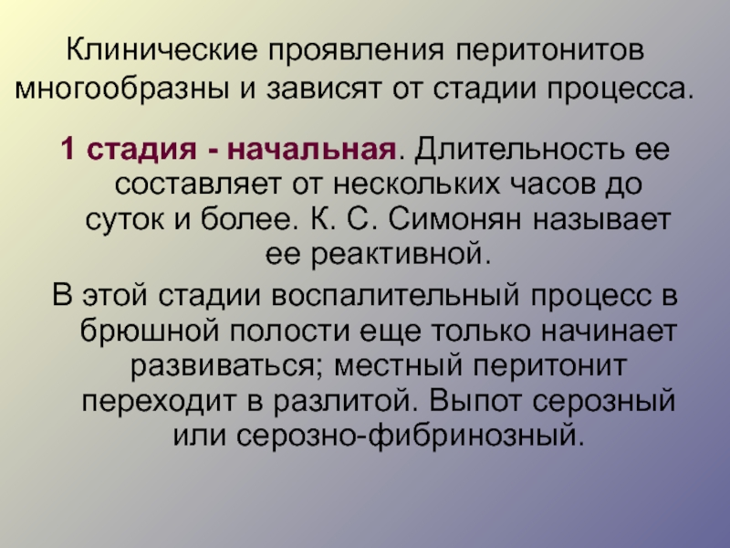Слайд 1ПЕРИТОНИТ. КЛИНИКА,