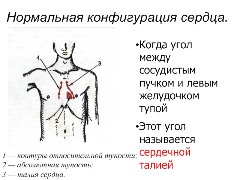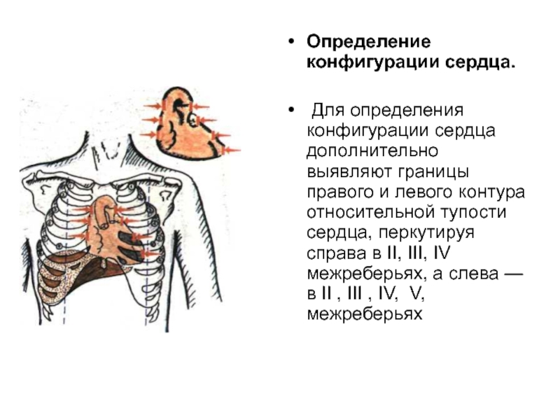 Слайд 23Интерпретация некоторых данных перкуссии сердца(продолжение)