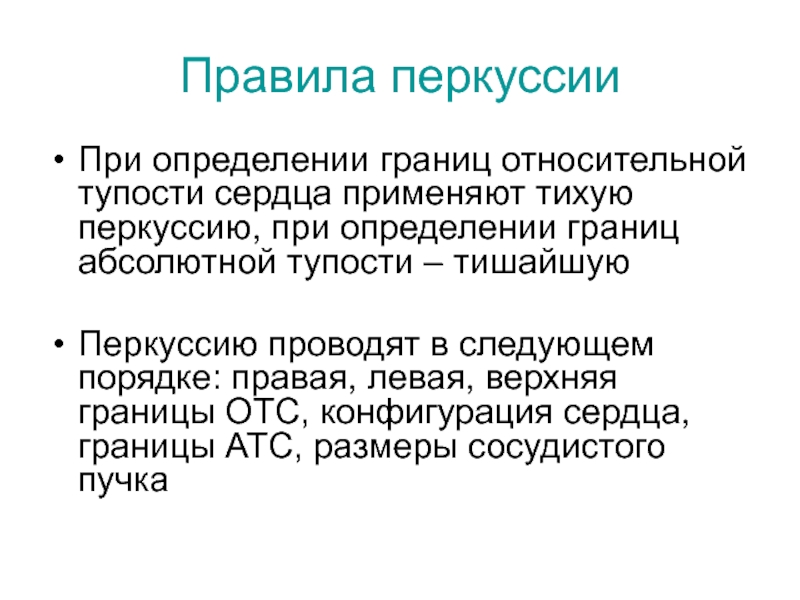 При определении границ относительной тупости сердца применяют тихую перкуссию,
