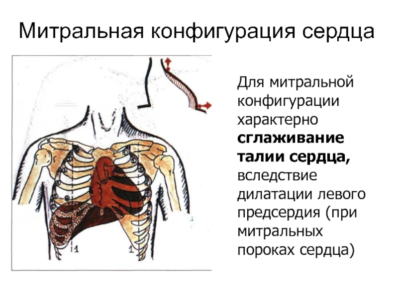 Для митральной конфигурации характерно сглаживание талии сердца, вследствие
