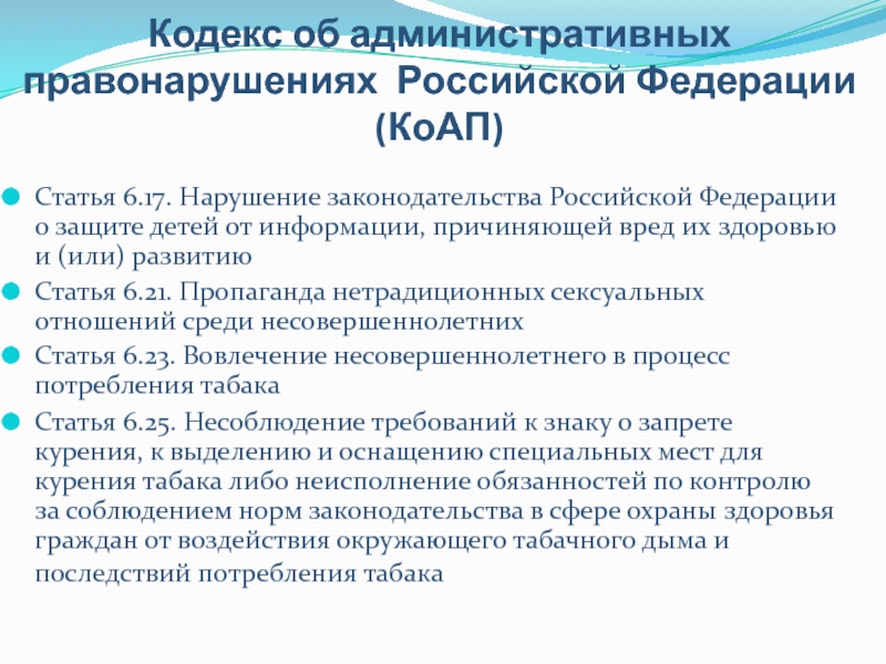 Слайд 35Кодекс об административных правонарушениях Российской Федерации (КоАП)