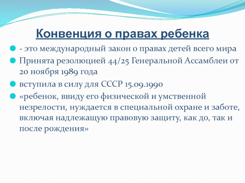 Принята резолюцией 44/25 Генеральной Ассамблеи от 20 ноября