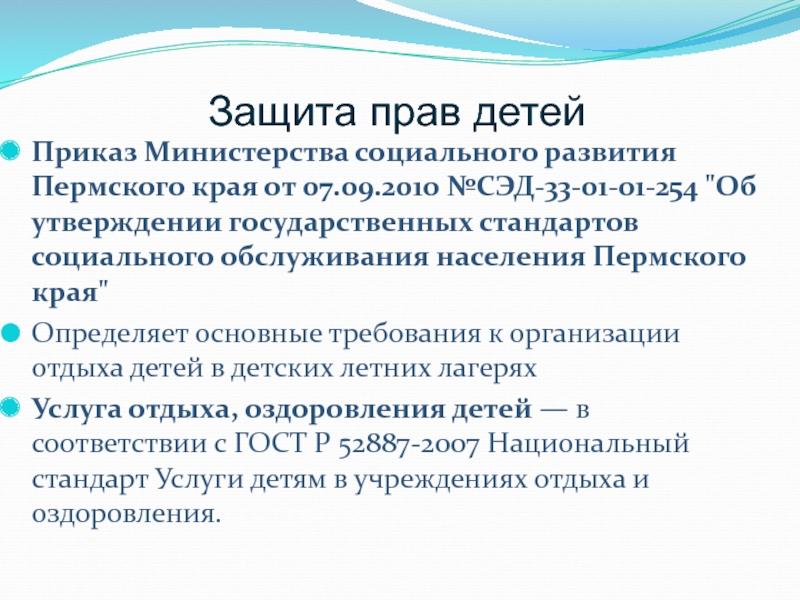 Услуга отдыха, оздоровления детей — в соответствии с ГОСТ Р 52887-2007 Национальный стандарт Услуги детям в учреждениях отдыха и оздоровления.