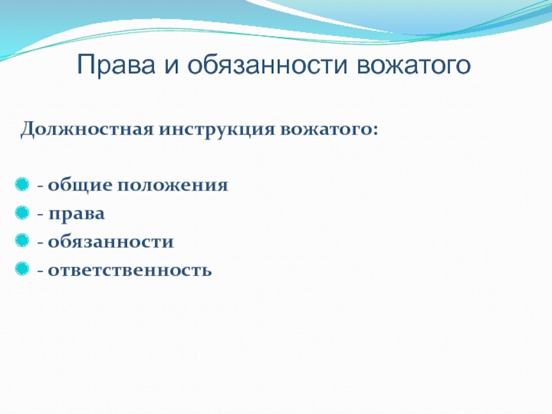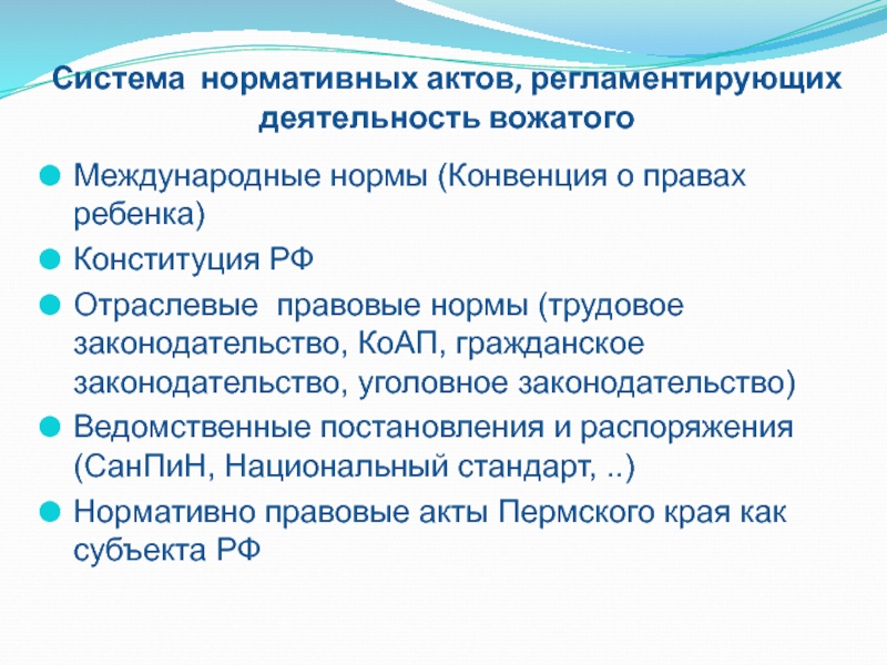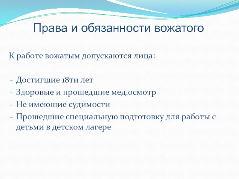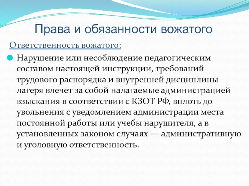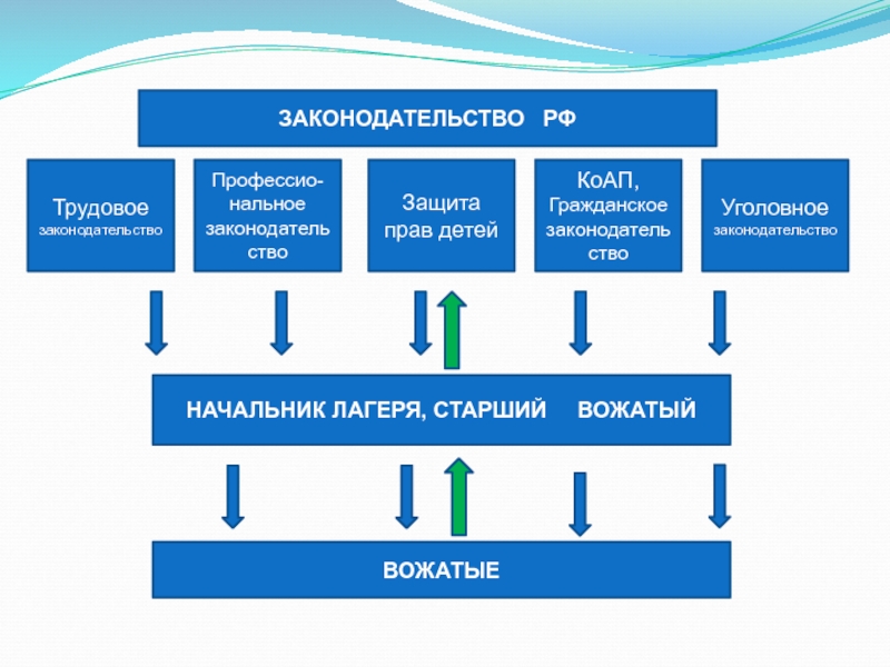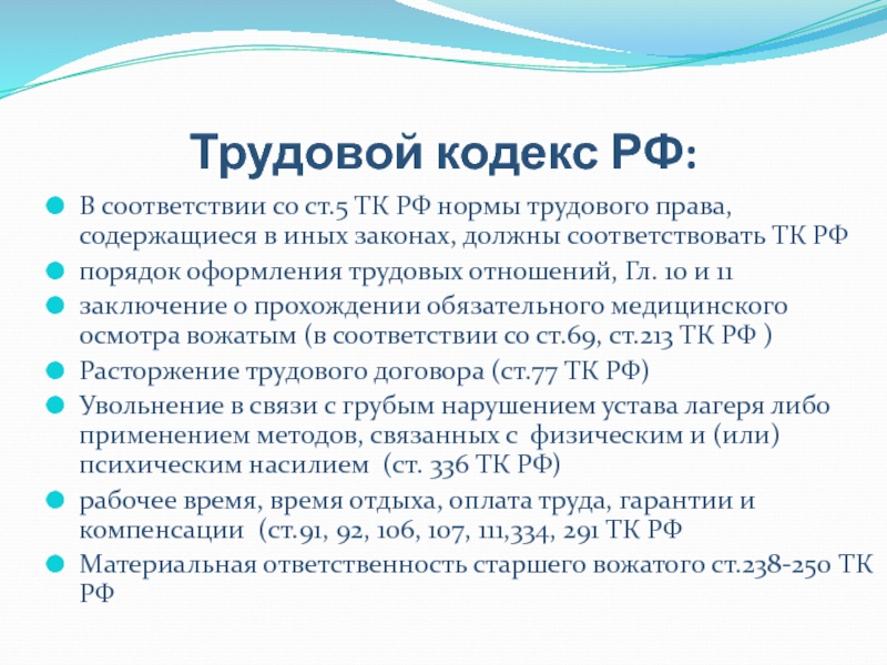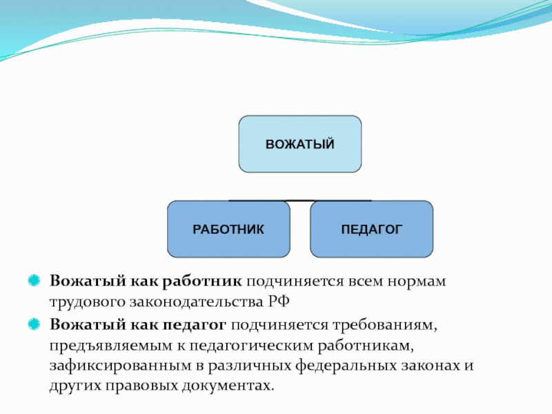 Слайд 4Вожатый как работник подчиняется всем нормам трудового законодательства РФ