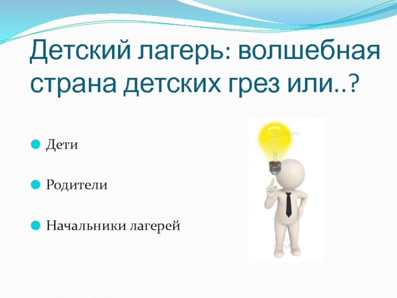 Слайд 2Детский лагерь: волшебная страна детских грез или..?