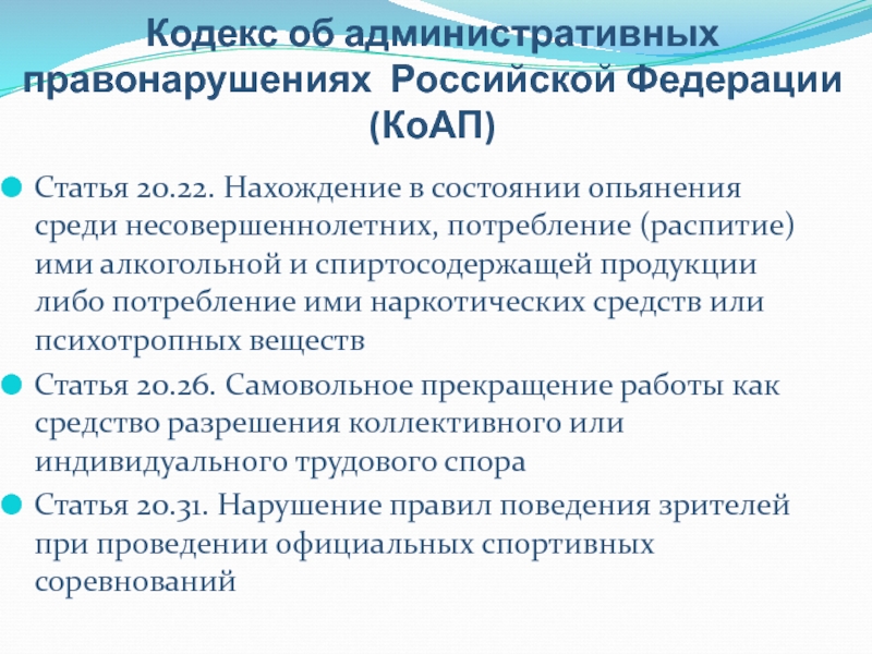 Слайд 37Кодекс об административных правонарушениях Российской Федерации (КоАП)