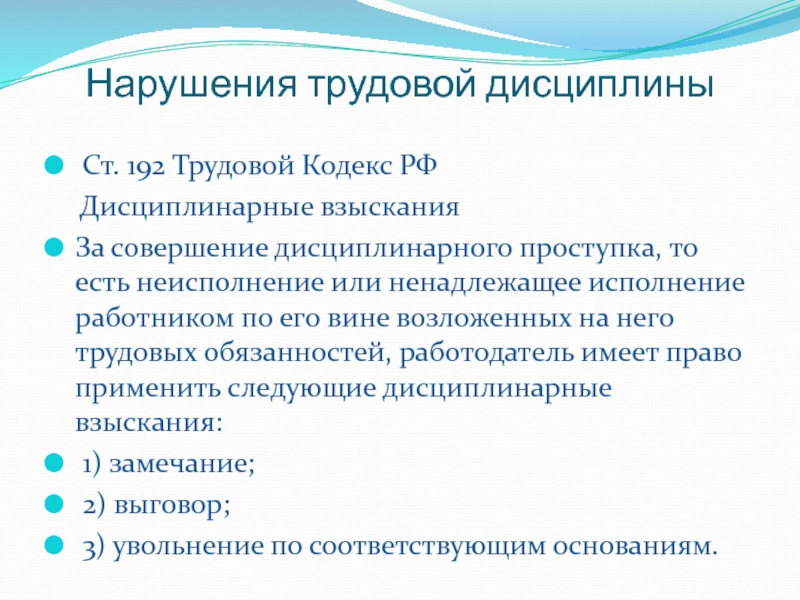 совершение дисциплинарного проступка, то есть неисполнение или ненадлежащее исполнение работником