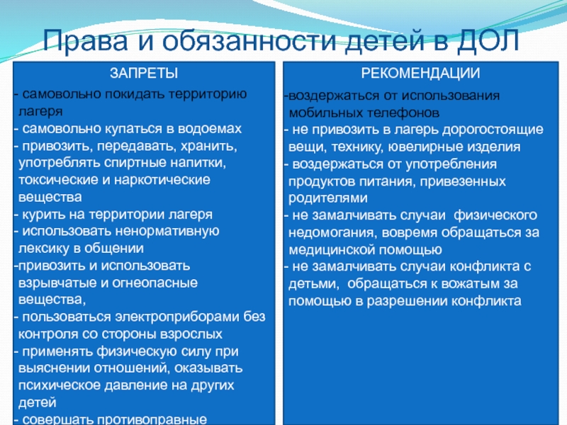 не привозить в лагерь дорогостоящие вещи, технику, ювелирные изделия