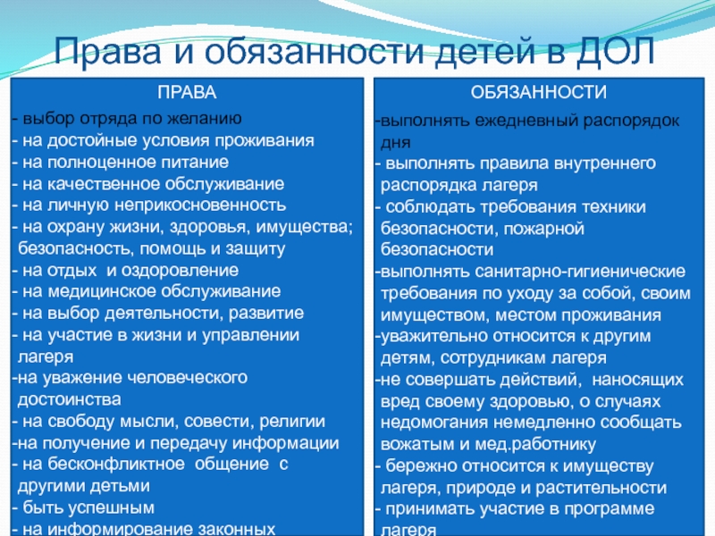 не совершать действий, наносящих вред своему здоровью, о случаях недомогания немедленно сообщать вожатым и мед.работнику