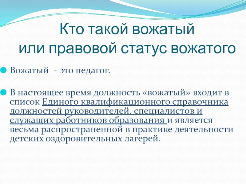 настоящее время должность «вожатый» входит в список Единого квалификационного справочника