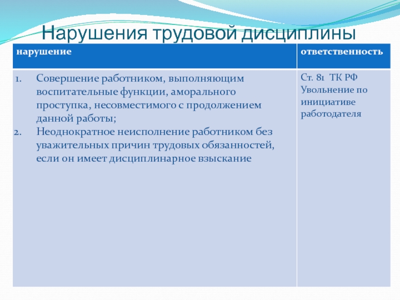 которые могут стать основанием для расторжения трудового договора с педагогическим работником;