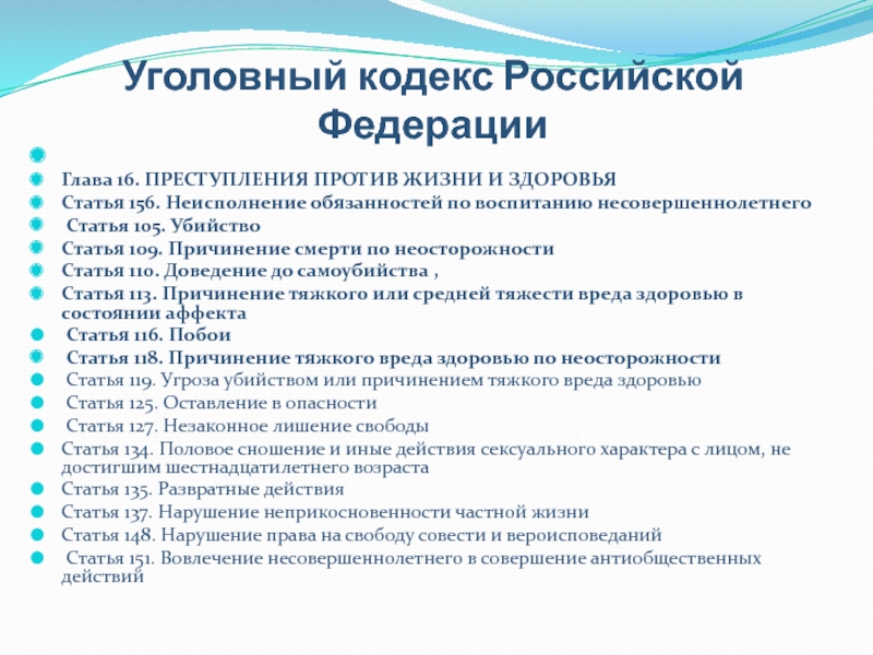 Статья 156. Неисполнение обязанностей по воспитанию несовершеннолетнего