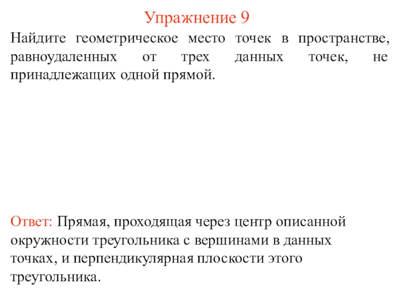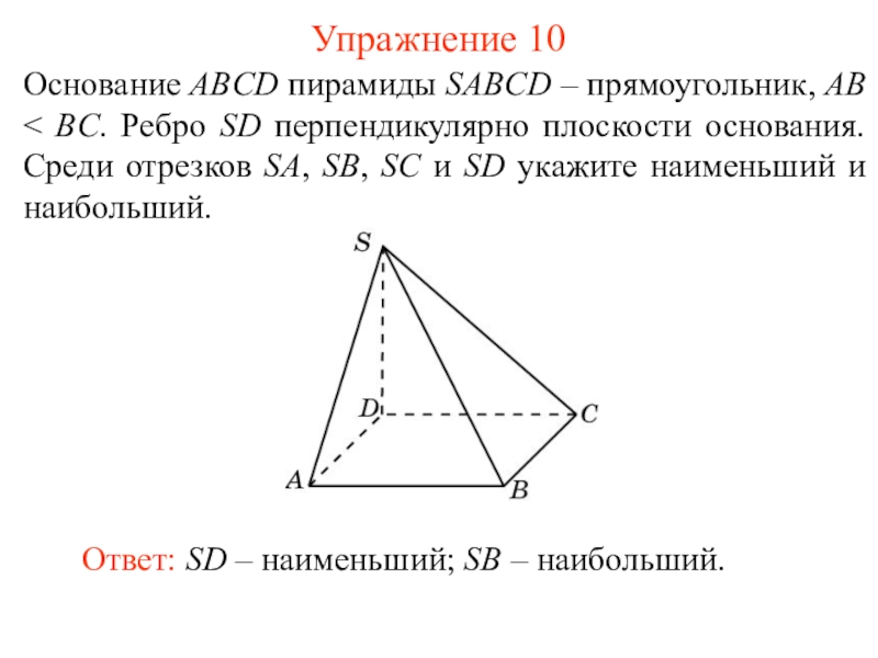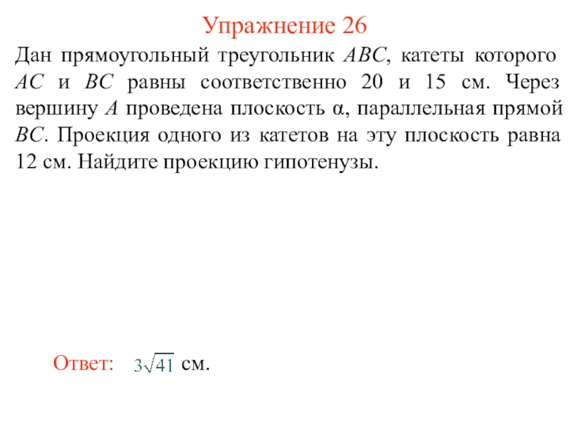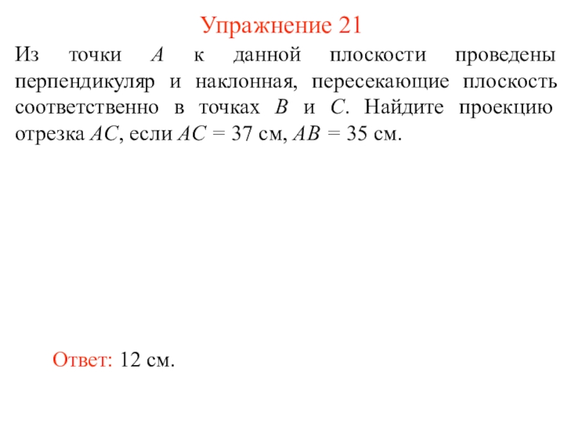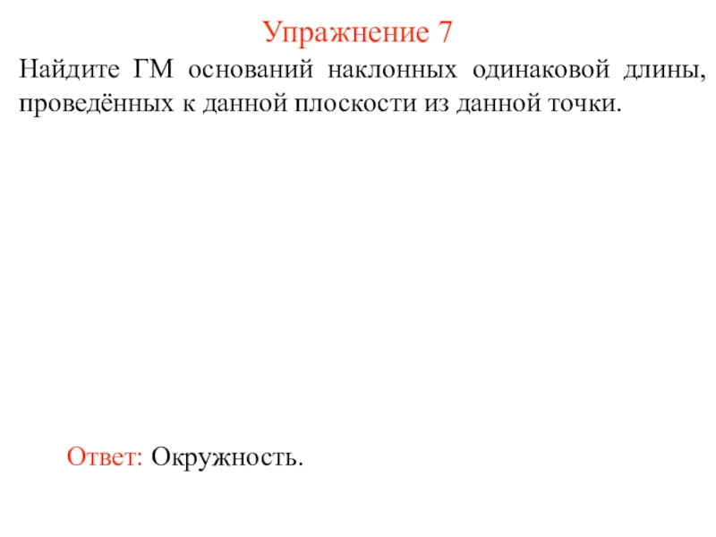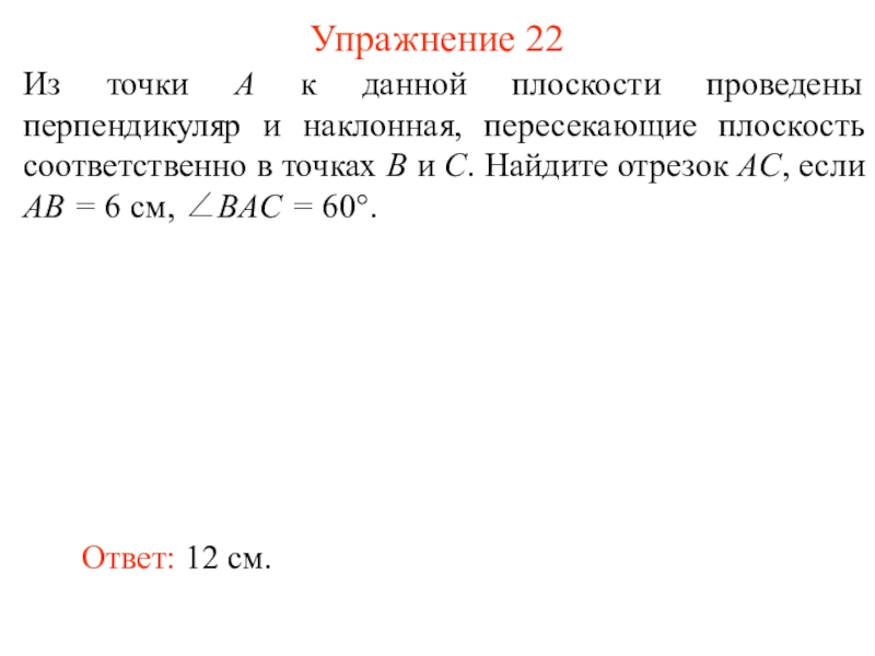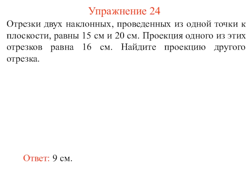 Наклонной к плоскости называется прямая, пересекающая эту плоскость и не перпендикулярная ей. Наклонной называют также отрезок, соединяющий точку, не принадлежащую плоскости, с точкой плоскости, и не являющийся перпендикуляром.